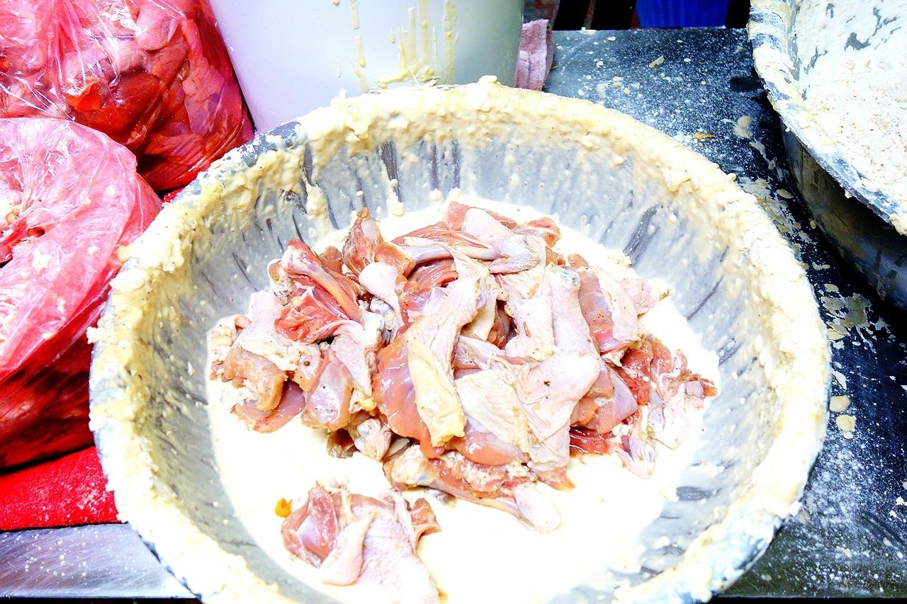 豪快に揚げられるチキンは、異様にサクサクで、ジューシー。