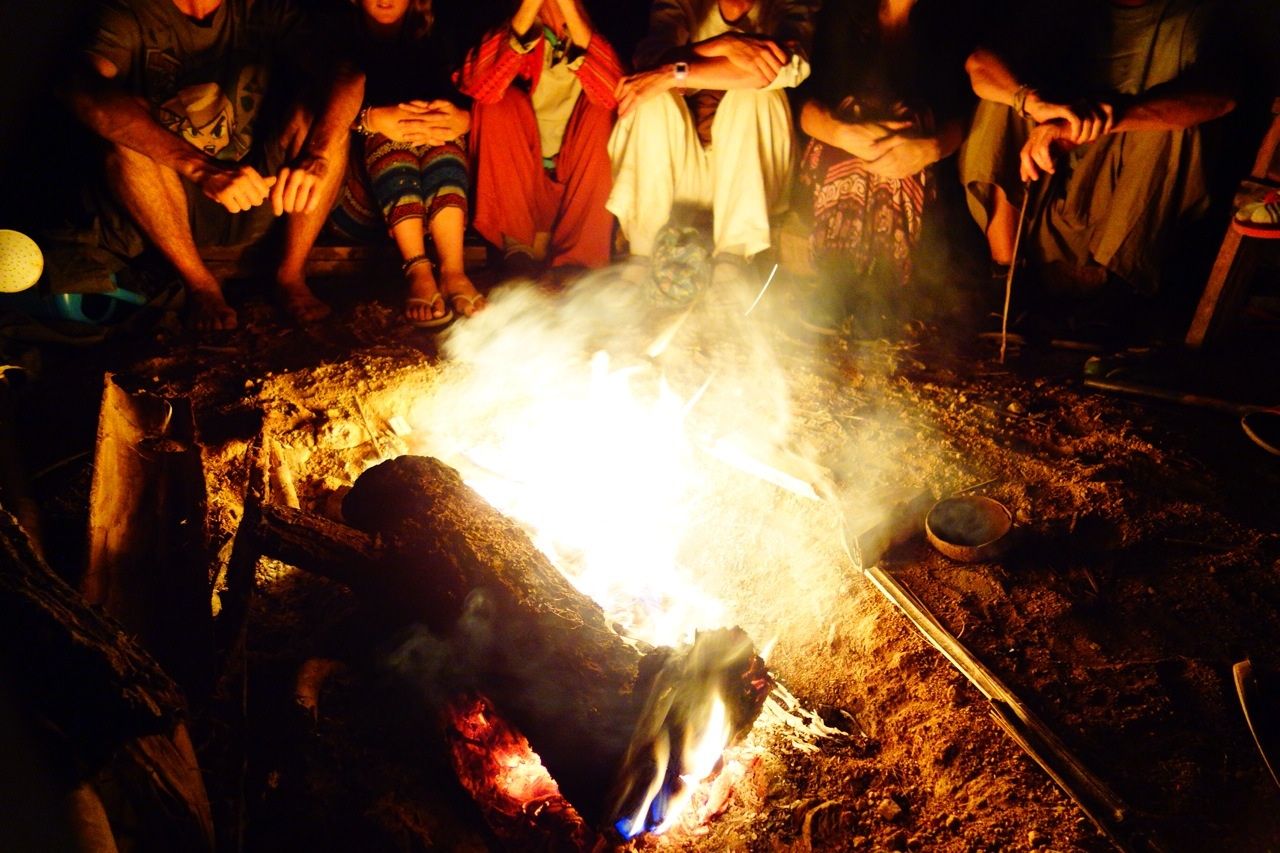 夜はキャンプファイヤーを囲みます。