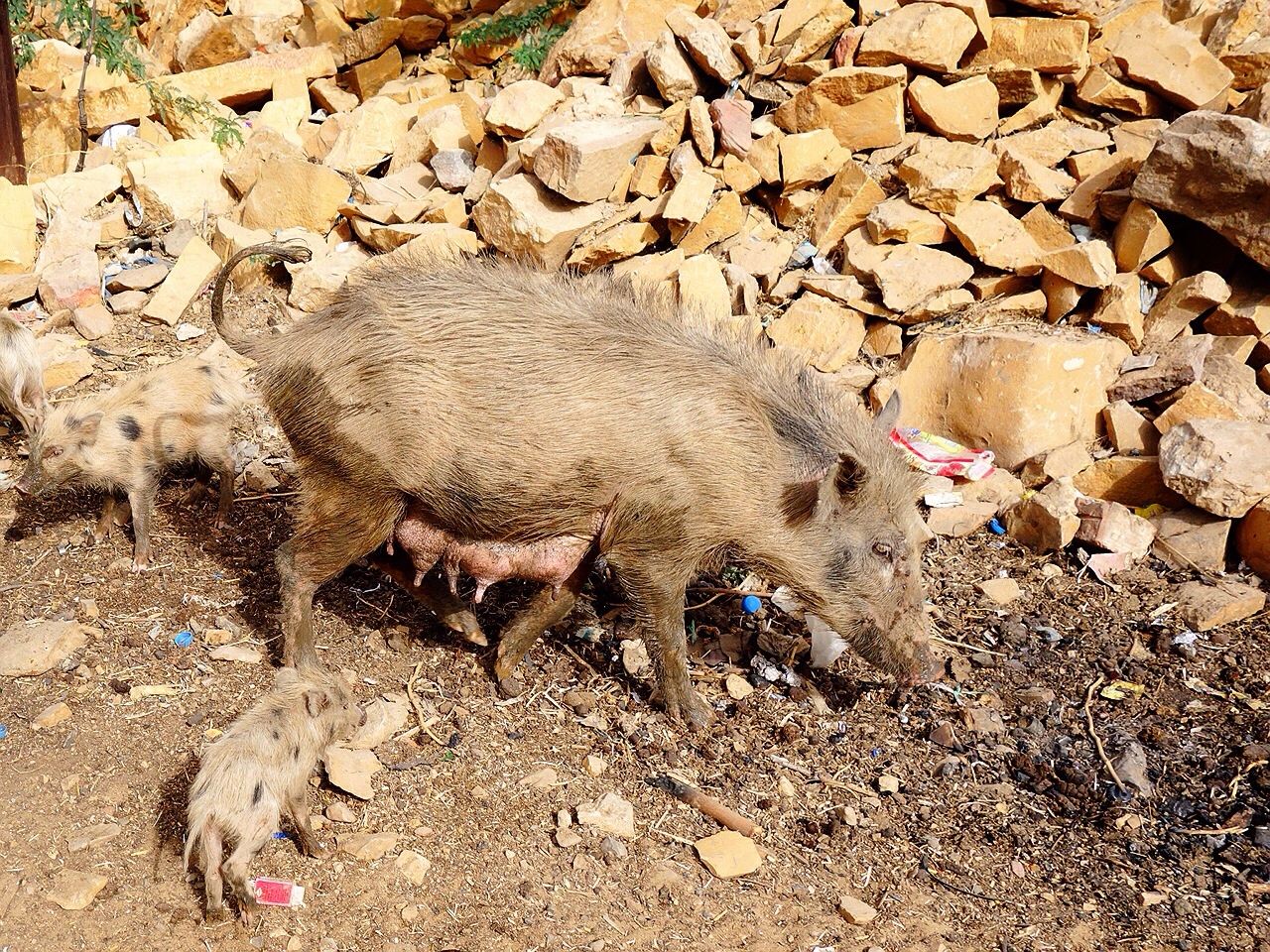 牛がいるのはインドでは当たり前の光景だけど、ここには豚がいた。