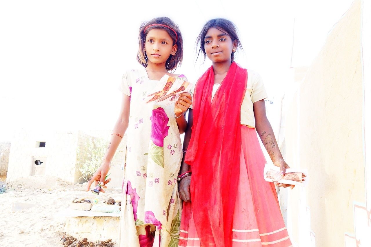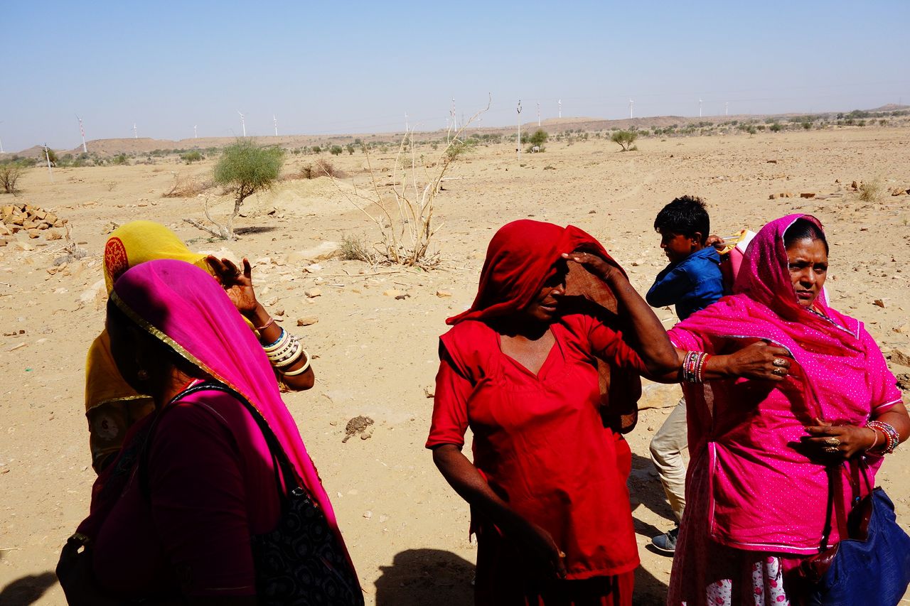 茶色い砂漠の中に現れた、色とりどりのサリーとパンジャビドレス。