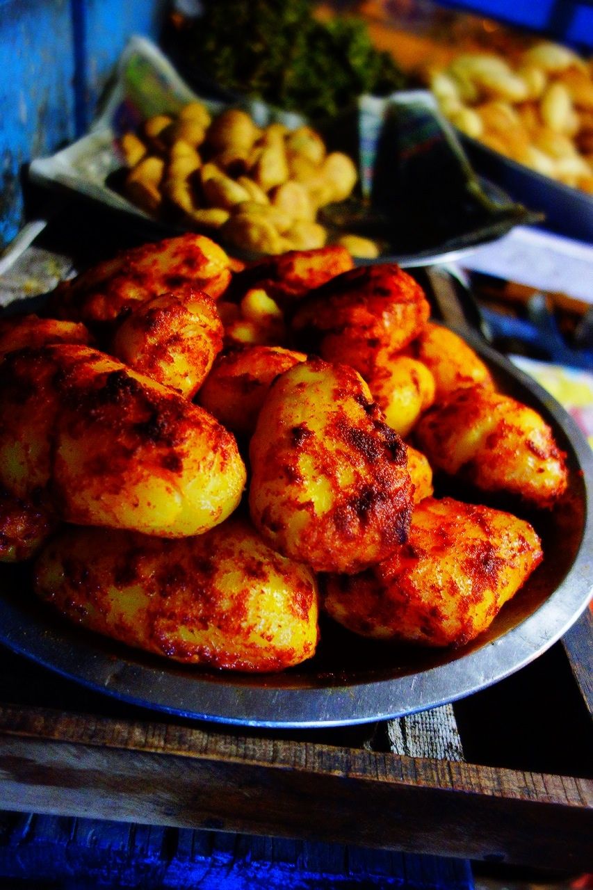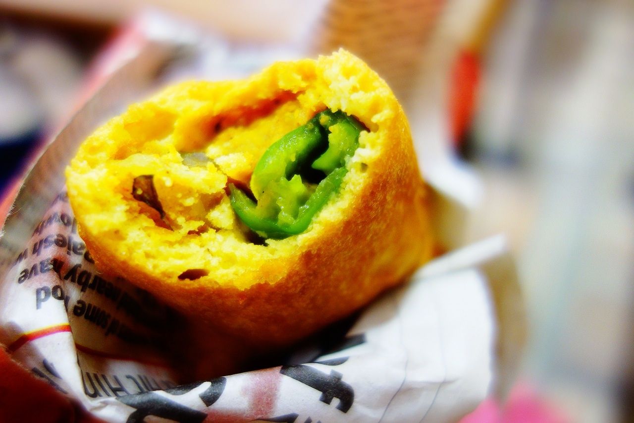 ラジャスタンのご当地揚げ物?右の揚げ物は、丸ごと唐辛子入り。