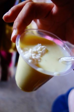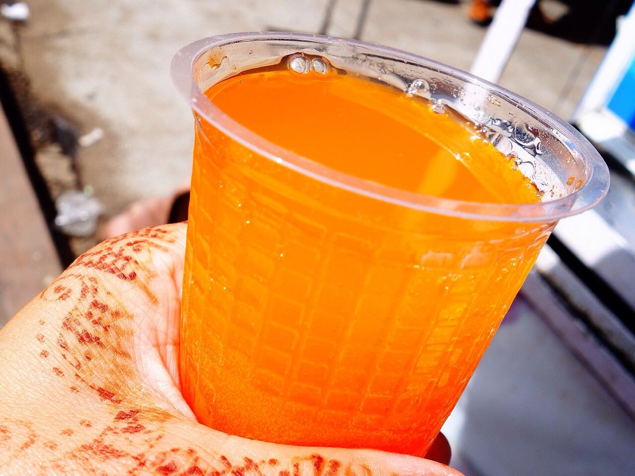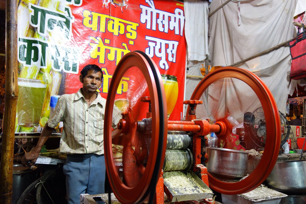 ↑サトウキビジュースとマンゴージュース 各10ルピー(約20円)