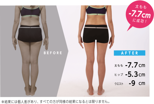 ビフォーアフターをよく見るとお腹から上が載ってたり、太ももに注力してる写真がないんですよね。