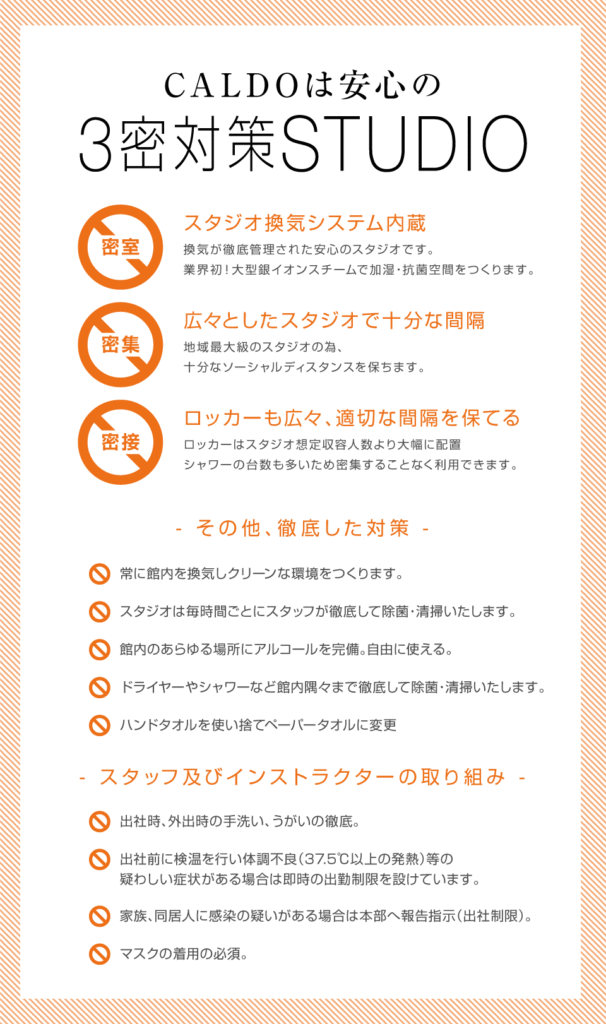 LLAVAの各スタジオにおいて、完成症予防として対策を実施しています。