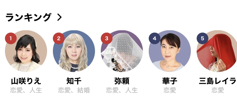 | 占いの種類 | 恋愛総合、あの人の気持ち、人間関係・家族・友人、運命・転機 |