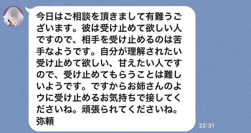 鑑定後に弥頼先生から届いたメッセージです。
