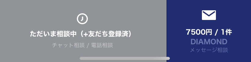 電話相談:DIAMOND 1分 300円 メッセージ相談:DIAMOND 1件 7500円 |