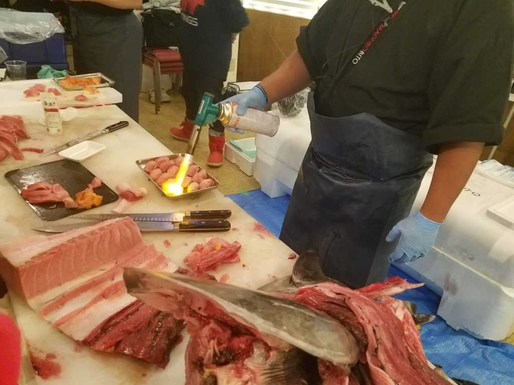 準備から片づけまで全てお任せできるので、このスペースを用意できればマグロ解体ショーを呼ぶことができます。