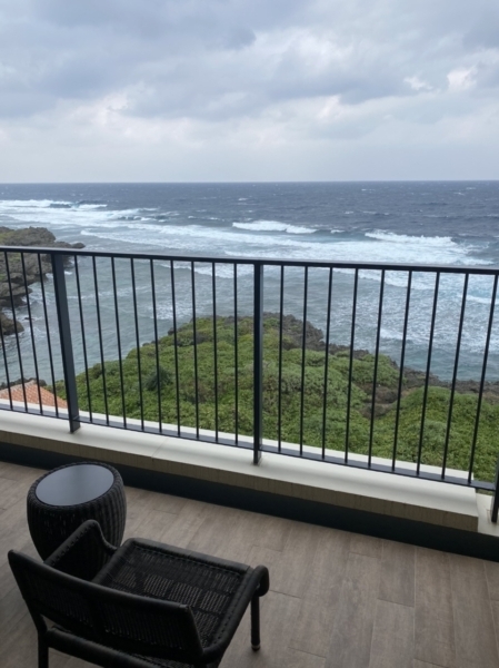 バルコニーから見えるのは、海!!波の音がダイレクトに聞こえてきて、とてもよかったです。
